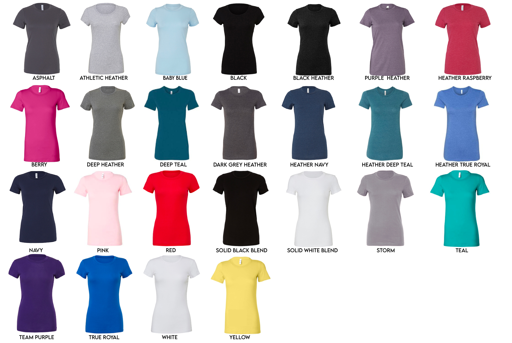 Her go-to tee fits like a well-loved favorite, featuring a slim feminine fit, crew neck, short sleeves and superior combed and ring-spun cotton that acts as the best blank canvas for printing. Offered in a variety of solid and heather cvc colors.